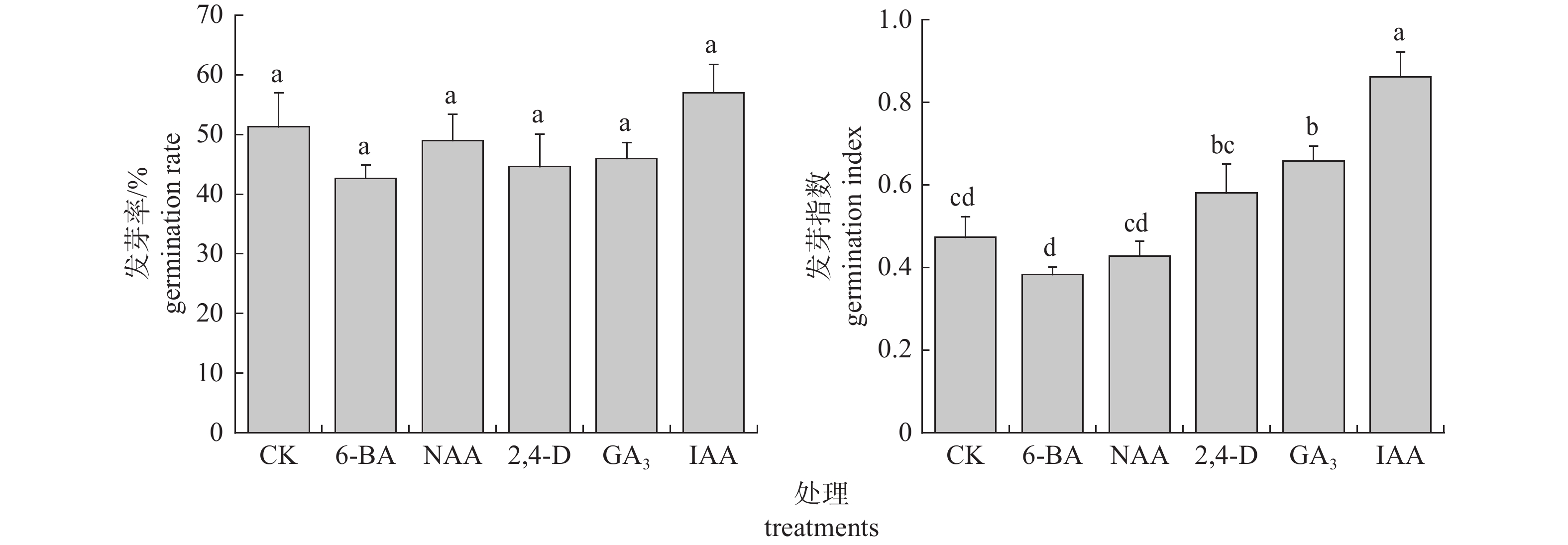 不同外源激素对鲜草果种子萌发和幼苗生长的影响